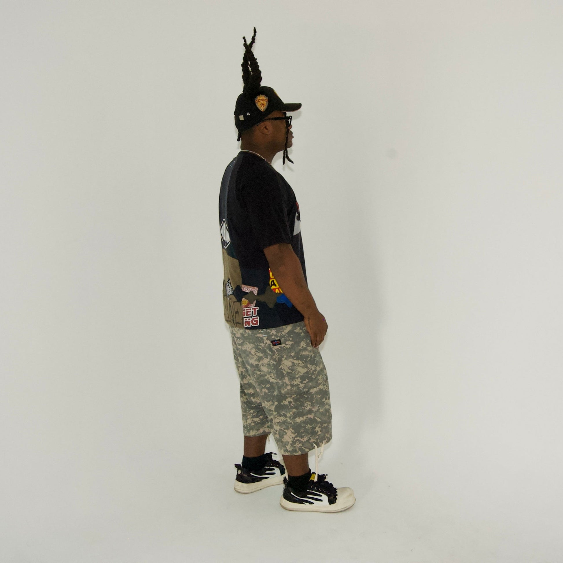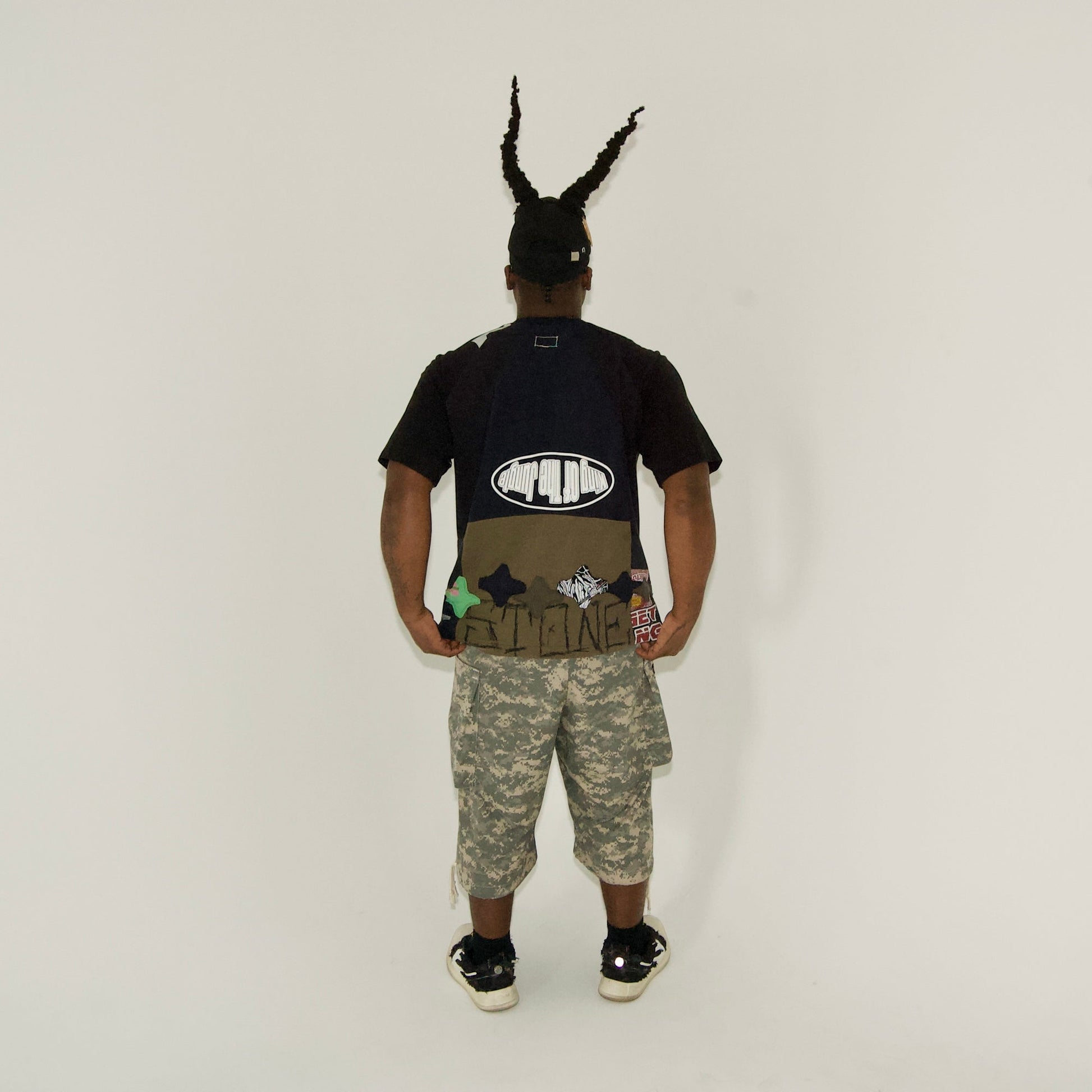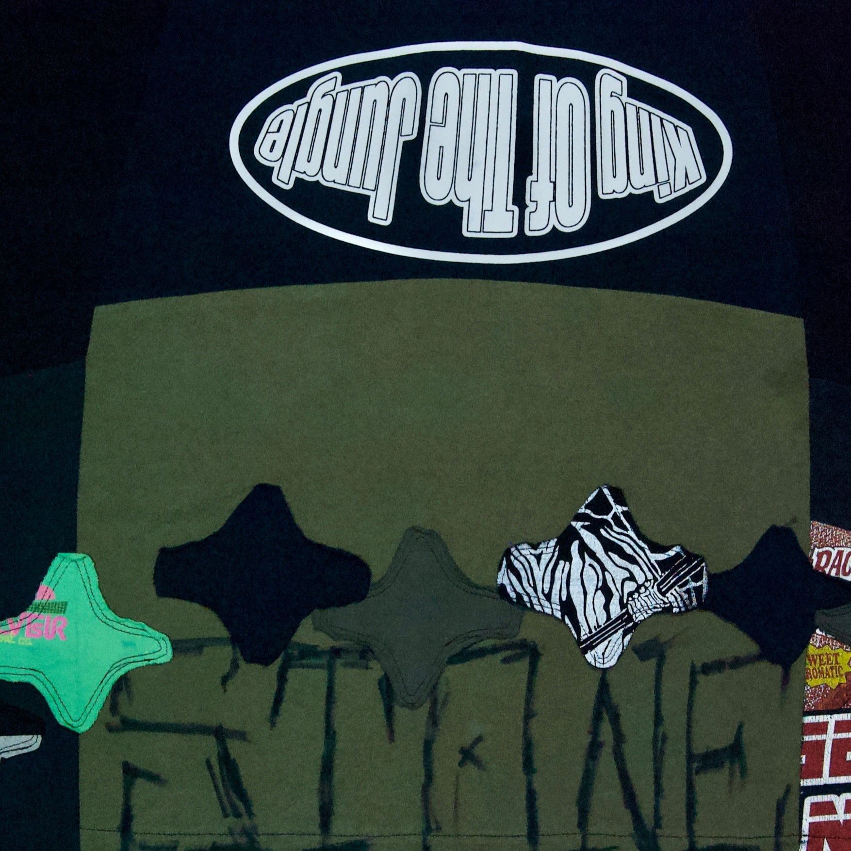 Fabric sourced from new and old graphic t-shirts resulting in small holes, fading or chipped graphics making each piece entirely unique
